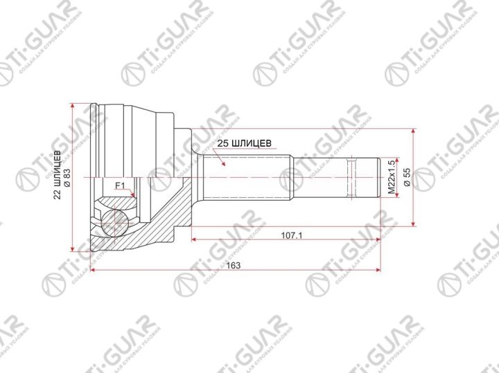 ШРУС наружный /внешний /TI-GUAR для Nissan Sunny 1990-1996 Sentra Pulsar; 22*55*25; TG-7413; (NI-013 0210-013) 3910150Y10 3921150Y00