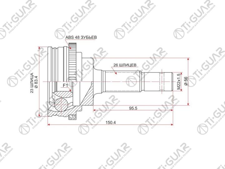 ШРУС наружный /передний правый /левый /TI-GUAR для Toyota Corolla Sprinter Corsa Tercel Cynos Caldina Carina Corona A# E#; 23*56*26; TG-9510Z48; (TO-E010A TO-E010 CO-7506A) 0110010 0110010A48 0110037